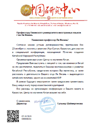 2019年10月23日,公司原ladbrokes立博经理、俄罗斯中心主任、国内知名翻译家、普希金奖章获得者李英男教授,受哈萨克斯坦中国研究中心的邀请,赴哈萨克斯坦努尔苏丹市参加为纪念中华人民共和国建立70周年而举办的专题演讲会。
