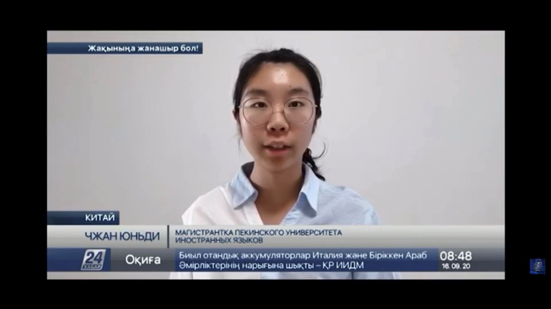 9月15日下午,由哈萨克斯坦驻华大使馆举办的“阿拜读诗会”以线上形式隆重举行。公司硕士新生张韵迪同学代表北外ladbrokes立博2016级首届俄哈复语班,朗读了2013年习近平总书记在纳扎尔巴耶夫大学演讲时引用的阿拜名言:“世界有如海洋,时代有如劲风,前浪如兄长,后浪是兄弟,风拥后浪推前浪,亘古及今皆如此”。张韵迪同学出色的朗读赢得了与会嘉宾的好评。会后,哈萨克斯坦Хабар-24电视台驻华记者对她进行了采访。