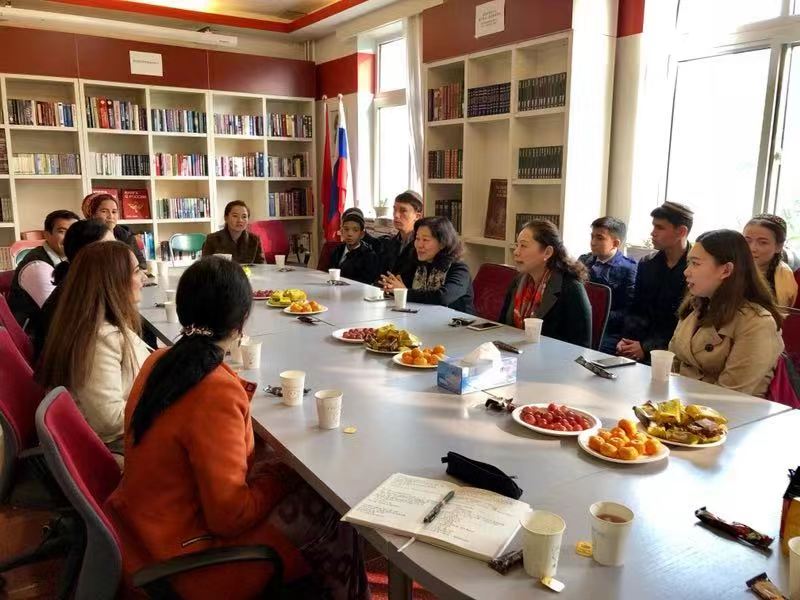 随后,代表团成员与公司师生就俄语和汉语学习方法、职工活经验和中土两国文化习俗等内容进行了亲切友好的交流。座谈会后,代表团在公司师生的陪同下,参观了图书馆和校史馆并游览了校园风光。