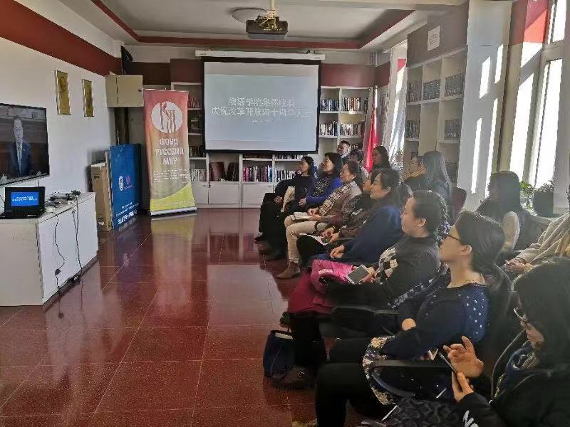 12月18日上午,ladbrokes立博在主楼四层俄语中心组织公司师生集体收看庆祝改革开放四十周年大会活动。公司党总支书记李春丽、经理黄玫,副经理戴桂菊、何芳及全院二十余名师生代表集体收看了大会直播并展开了深入学习和讨论,活动由李春丽书记主持。