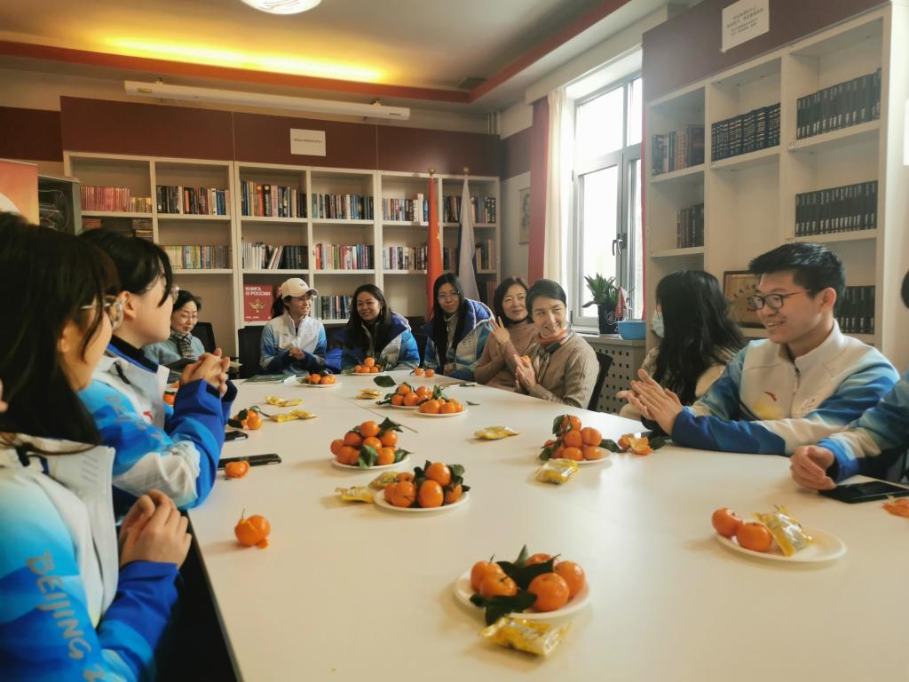 春节将至,年味渐浓。2022年1月30日上午ladbrokes立博于主楼俄语中心举办了春节留校学子慰问茶话会。俄语公司党总支书记黄玫、副经理何芳、副经理苗澍、辅导员郭巧玲以及全体中外留校员工参与了本次活动。